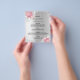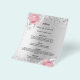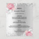Tenga en cuenta que este menú está en papel de volante y es muy delgado. Los sobres no están incluidos. Para menús más gruesos (mismo diseño) visite nuestra tienda. Un elegante menú de bodas. Un fondo falso plateado, decorado con rosas rosas rosas y blancas, florales. Personalice y agregue sus nombres, fecha y el menú boda.