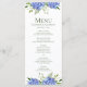 Este elegante menú de moda y fiesta de compromiso con la hidrangea azul es perfecto para sus mesas en su fiesta de compromiso. Tiene secciones para el primer plato, el segundo plato, dos entrantes y postres. Las plantillas son muy fáciles de usar, por lo que hacer esto propio tomará sólo uno o dos minutos. Sin duda, coloque una en cada lugar en su fiesta para que sus huéspedes conozcan las increíbles opciones de comida que ha puesto a su disposición y puedan ordenar sin esfuerzo sus opciones a medida que avanza el servicio de cena.