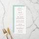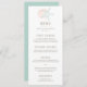 Coloca estas elegantes tarjetas de menú en cada lugar para darle un toque bonito a la recepción de tu boda. El diseño de la moda de la playa incluye letras de color arena, con nombres y fechas bodas en la parte superior, además de una concha de melocotón y un ilustracion de pez estrella de agua. Coordina con nuestra colección de invitaciones a la boda de los Pasteles costeros.