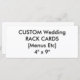 Para ver la gama completa y de gastos de las plantillas de productos bodas de personalizable, visite http://www.personalizedweddingessentials.com. Carta personalizada de Bodas y tarjetas para rack de programas, impresas en papel blanco brillante (100 lb.) con un acabado brillante, impresión de gran calidad, color completo y sangre completa. 4" x 9" (retrato) o 9" x 4" (paisaje). mínimo de 25 pedidos de tarjeta. Hasta un 50% de descuento en pedidos masivos. Elementos esenciales y regalos de personalizable personalizados listados para su uso en bodas y celebraciones relacionadas con bodas. Compras múltiples (compra masiva) descuento ahorro en muchos artículos.