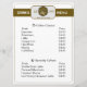 Este menú de cafetería está construido alrededor del siguiente logotipo personalizable: En el centro del emblema, la palabra café está escrita utilizando una taza de café y granos de café. Personalízalo con el nombre del barista, nombre de la empresa de café / bar. En la parte del logotipo, la mención establecida con año y el eslogan son personalizables.