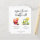 Este menú de cócteles de moda destaca por su tipografía negra personalizado sobre 2 bebidas y sus ingredientes para el bar boda. Un bonito dibujo de verano de Sangria y Mojito le da un toque fresco a su carta de bar. Con los nombres de la pareja y la fecha de recepción.