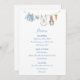 A Charming Delivery from Mr. McGregor's Garden! The menu features a sweet watercolor clothesline strung across the top proudly displaying tiny, adorable items, each subtly featuring Peter Rabbit. The back features the clothesline motif and a soft cloud. Easily add your own details and change the font style, size color and placement if you would like to. This menu is a beautiful detail, inviting your guests to share in the "hoppy" anticipation of your baby boy's arrival!