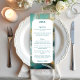 Agregue un toque de arte moderno a su recepción con este menú de boda pintado con pinceladas de lujo en turquesa y dorado. Rico en textura visual y rebosante de color, el diseño presenta pinceladas audaces en turquesa, verde azulado y dorado falso brillante, ofreciendo el aspecto de una obra de arte pintada a mano en un acabado impreso refinado.