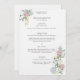 La exquisita carta boda está adornada con un elegante motivo floral, con delicados rosas e hortensias escondidas entre exuberantes hojas verdes. El guión clásico y las fuentes serif mejoran aún más la sofisticación general. Se compone de tres secciones con un título y una descripción. Personalízalo para que tu día de boda sea verdaderamente excepcional.
