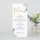 Menú plano Boda de follaje verde