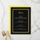 Menú plano boda negro, amarillo y blanco. Celebra lujosamente con toda esta elegante colección, le dará un toque impresionante a su evento. Las partes de esta colección se pueden personalizar. Esta colección es personalizable. ¡Disfruten de su celebración, vítores!