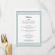 Cree sus propios menús de tabla personalizados para un evento especial. La tipografía clásica y el borde de la llave griega le dan un toque de elegancia a su celebración: un patrón geométrico, de laberinto, inspirado en el antiguo arte griego y romano. Esta plantilla editable permite al personalizar del texto adaptarse perfectamente a sus platos o cursos. Perfecto para una cena formal fiesta, almuerzo elegante, brunch, cumpleaños, boda u otro evento. Colores impresos: gris y blanco, con letras grises oscuras.