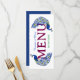 Menú Plano de Boda de Pavo Real Azul Real. Puede personalizar este menú con los nombres y la fecha del evento. También puede cambiar el color de fondo, las fuentes, los colores de las fuentes y las imágenes si es necesario, simplemente haga clic en "Editar usando la herramienta de diseño".