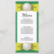Añada un toque elegante a sus mesas bodas con estas tarjetas de menú planas personalizados. La carta es alta y tiene un bonito diseño de perla y cinta amarilla dorada sobre un agradable fondo verde esmeralda. Los bodas de primavera o verano se complementarán con los colores verde y amarillo animado de esta carta. Los platos del menú, como el plato principal y el postre, se pueden mostrar en la parte delantera de la tarjeta. Asegúrese de incluir también los monogramas de la pareja de papá y la fecha del boda en la parte posterior de la tarjeta.