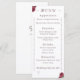 El diseño presenta un encabezado elegante en un tipo de letra Nuptial de color plateado. Las esquinas superior izquierda e inferior derecha están adornadas por la imagen de rosas finos. Un elegante florecimiento bordea los lados. En la esquina inferior izquierda aparece la tradicional cruz y el símbolo de anillos para el matrimonio. El diseño inverso incluye las iniciales de novia y novio en el tipo de letra Nuptial. El texto y el borde aparecen en un color rosa burdeos. También disponible en fuentes y bordes de color plateado. Diseñado para coordinar con la suite Boda católica de Rosas finos.