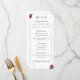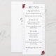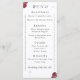 El diseño presenta un encabezado elegante en un tipo de letra Nuptial de color plateado. Las esquinas superior izquierda e inferior derecha están adornadas por la imagen de rosas finos. Un color plateado florece bordea los lados. En la esquina inferior izquierda aparece la tradicional cruz y el símbolo de anillos para el matrimonio. El diseño inverso incluye las iniciales de novia y novio en el tipo de letra Nuptial.