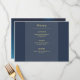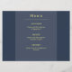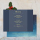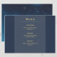 Menú plano personalizado blue gold. Frente azul y dorado con estrellas majestuosas en la parte posterior. Personalice el texto en la parte delantera y trasera del menú. Excelentes suministros para su evento empresarial, gala, fiesta de Navidad y más. Parte de la colección de diseño Christmas Star. Utilice la plantilla para crear su propio menú azul y dorado.