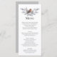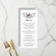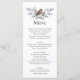Menús con un ave acuarela en roya, marrón y gris en plata, y botanticales de invierno de otoño gris. El dorso de la tarjeta es gris pálido