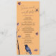 Vestir su celebración de Halloween con el misterioso encanto de este "Menú de Halloween de Plum Black Crow Spider Autumn Leaves." El diseño muestra una mezcla de elementos espeluznantes, con cuervos negros, arañas espeluznantes y hojas de otoño en ricos tonos ciruela. Esta carta de menú ofrece el ambiente para una fiesta memorable, presentando tus delicias y cocciones de Halloween. Es la elección ideal para encantar a sus huéspedes y elevar el ambiente espeluznante para una noche de diversión malvada. El menú incluye las palabras "¡Grita, comúnmente y asusta!". Los colores de este menú son naranja y ciruela morada.