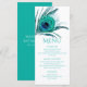 Este diseño presenta una elegante pluma de pavo real turquesa brillante sobre un fondo blanco con la información de su menú de Bat Mitzvah a continuación. Personalice editando el texto en las casillas de texto. Diseñado para usted por Evco Studio www.zazzle.com/store/evcostudio #mitzvah #batmitzvah #planificadordeeventos #mazeltov #judio #mitzvahswag #fiesta #vidajudia #boda #kosher #mitzvahlife #eventoscorporativos #fiestamitzvah #planificadordefiestas #planificaciondefiestas #chicabatmitzvah #planificadoramitzvah #planificacionmitzvah #menus