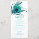 Menú Pluma de Pavo Real Chic Brillante Turquesa Bar Mit
