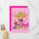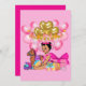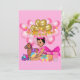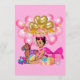Ilustracion de una adorable bebé vestida de rosa, con el pelo en bollos con arcos rosas y tiara princesa. Rodeado de juguetes y con globos rosados y dorados encima con estrellas y pancartas lunares. Un regalo lindo para los padres que esperan, la ducha de bebé, la revelación de género o el regalo de cumpleaños del bebé.