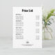 Crea tu propio personalizado de producto o lista de precios de servicios con nuestra plantilla de envío limpia y moderna. Perfecto para la información de la lista de precios, ya sea un vendedor de festivales, un puesto de comida de mercado, o un bistró tradicional, bar, sándwich o cafetería. Simplemente haga clic en 'personalizar este diseño' para cargar su producto/servicios, precios, logotipo de la empresa y dirección web o número de contacto. Cada sección se puede eliminar y puede agregar o eliminar productos/servicios en cada sección según sea necesario para satisfacer los requisitos de su empresa. Disponible en una gama de colores de fondo. Para mayor flexibilidad, puede cambiar fácilmente el color de fondo, el color del texto y el estilo del texto en la Herramienta de diseño de Zazzle, simplemente pulse "editar usando la herramienta de diseño". ¡Coincide con los colores de su marca exactamente para el signo perfecto!