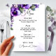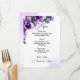 "Deleite a sus invitados con nuestro menú de boda bellamente diseñado, que muestra elegantes acentos florales en púrpura y plata sobre un refinado fondo de marfil. Una perfecta combinación de sofisticación y estilo para su día especial."