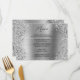 Un borde circular de falso purpurina de plata contra un falso Relieve metalizado metálico gris plateado gráfico de arte digital. Diseño de texto de menú minimalista para su evento o boda especial. El purpurina falso y el Relieve metalizado imprimen como una foto en estos menús de orientación horizontal 7x5.
