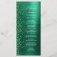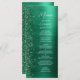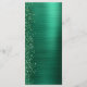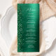 Este elegante y moderno menú boda se caracteriza por su purpurina de diamante pintado con un fondo metalizado de imitación verde esmeralda. El texto de personalizable combina el guión de escritura a mano en blanco y las fuentes sans serif. El diseño metalizado y purpurina cepillado verde se repite al revés.