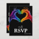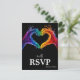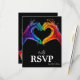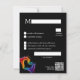 Presentamos la tarjeta RSVP de la vibrante colección "Heart of Pride", con impresionantes obras de arte de la colección en la parte delantera. La leyenda dice "Please RSVP" junto con la fecha de la respuesta, e invita a los invitados a confirmar su asistencia con elegancia y orgullo. El diseño muestra la icónica obra de arte "Corazón del Orgullo", dos manos formando un gesto cardíaco con colores LGBT radiantes, ambientada en un fondo negro profundo, haciendo una declaración audaz y significativa. En la parte posterior, los clientes encontrarán un espacio para indicar sus nombres, indicar la aceptación y especificar el número de asistentes. El hotel ofrece una variedad excelente de instalaciones recreativas, incluyendo piscina al aire libre, masajista, gimnasio. Esta cuidadosa adición permite a los invitados hacer personalizares de su respuesta, asegurando que sus preferencias sean consideradas para la celebración. La tarjeta RSVP "Corazón de Orgullo" combina perfectamente el atractivo estético con la funcionalidad práctica, creando una experiencia memorable y agradable para los huéspedes, ya que confirman su asistencia y realizan su selección de comidas. La orientación vertical y el diseño llamativo de la tarjeta lo convierten en una pieza destacada en cualquier suite de papel boda.