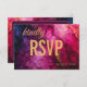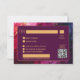 Presentamos la tarjeta RSVP de la encantadora colección "Celestial Elegance: The Marble Symphony", con hermosas obras de arte de la colección en la parte delantera. La leyenda dice "Please RSVP" junto con la fecha de la respuesta, e invita a los invitados a confirmar su asistencia con elegancia. En la parte trasera, con un lujoso fondo morado oscuro, los clientes encontrarán espacio para indicar sus nombres, indicar la aceptación y especificar el número de asistentes. El hotel ofrece una variedad excelente de instalaciones recreativas, incluyendo piscina al aire libre. Esta cuidadosa adición permite a los invitados hacer personalizares de su respuesta y asegura que sus preferencias sean consideradas para la celebración. La tarjeta RSVP "Celestial Elegance: The Marble Symphony" combina el atractivo estético con la funcionalidad práctica, creando una experiencia memorable y agradable para los huéspedes, ya que confirman su asistencia y realizan su selección de comidas.