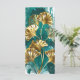 Rama con joyas, oro y hojas verdes de Ginko biloba en luz, fondo verde pintado. Ginko biloba