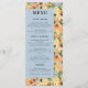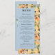Elementos: Hermoso retrato de girasoles en un jarrón rústico. Sus nombres y detalles aparecen en una fuente divertida y ligeramente desgastada. Colores: Amarillo, negro, marrón, naranja, verde, azul, violeta. Temas: rústico, campo, granero, romántico, jardín, cabaña, brillante, soleado. Colección: Colección de bodas de ramo de girasoles rústicos acuarela. Tipo de producto: Menú