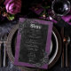 Traslade a sus huéspedes a un mundo de oscuridad y encantadora elegancia con nuestra vintage carta gótica boda. El fondo púrpura profundo y envejecido prepara el terreno para un sorprendente contraste, a medida que el texto en negrita blanco emerge de intrincados cuadros de texto en negro. Los elementos góticos tridimensionales adornan el diseño, capturando la esencia del misterio y el romance. Desate la magia y marca el tono para un día de boda inolvidable. Creado por Simply Farmhouse Press.
