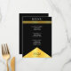 Carta de la recepción de bodas negras con triángulo geométrico de bloques de color dorado y rayas. Tipografía elegante para una mirada cara a un precio asequible. Personalizar la lista de comidas y los detalles personales. Ideal para una temática moderna y minimalista de boda con un toque de estilo.