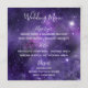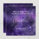 Manu de la recepción de la boda púrpura de Star Light. Este romántico menú de la recepción de Bodas tiene un cielo nocturno violeta con estrellas brillantes blancas en tonos claros y oscuros de morado y blanco. El texto de la parte delantera incluye: Bienvenidos a nuestro Boda, el Primer Nombre y Fecha Boda de la Novia y Groom. El texto del lado inverso incluye: Su selección de aperitivos, Entre y postres. Para personalizar esta tarjeta, simplemente inserte los detalles del menú en nuestra plantilla sencilla, reemplazando el texto de ejemplo. Asegúrese de ver las piezas coincidentes de esta colección de Bodas Púrpura de Star Light.