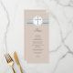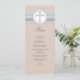 Perla preciosa de las características del esquema del azul de acero y de color del moreno una falsa y diseño cruzado en esta tarjeta del menú para su recepción religiosa de la celebración.