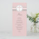 Un falso cordón precioso de color de las características rosadas y grises del esquema y un diseño cruzado bonito en esta tarjeta bonita del menú para su recepción religiosa de la celebración.