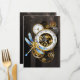 Diales antiguos con artes de oro y latón, decorados con libélula mecánica sobre fondo marrón, rayado. Steampunk.