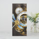 Diales antiguos con artes de oro y latón, decorados con libélula mecánica sobre fondo marrón, rayado. Steampunk.