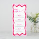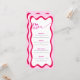 La carta de la ducha nupcial con un moderno borde ondulado rosa caliente es perfecta para una colorida y divertida Bachelorette Party. La invitación coincidente, las tarjetas de gabinete y los signos también están disponibles en esta colección