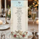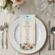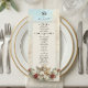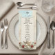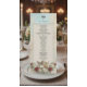 Traslade a sus invitados a una era de romance atemporal con este diseño de inspiración clásica, perfecto para establecer un tono sofisticado en su recepción formal. Este diseño presenta una composición clásica muy detallada centrada en un querubín vintage que toca el violín, representado en un estilo de relieve 3D falso para simular la apariencia de una escultura tallada. La obra de arte está colocada sobre un fondo de mármol falso impreso en tonos suaves de marfil y beige, enmarcado por delicada filigrana de encaje. Las rosas rojas carmesí profundas y las hojas verdes salvia añaden un rico contraste a la paleta de colores dorados antiguos. El encabezado muestra "Bon Appetit" en una elegante letra de caligrafía sobre un icono tradicional de cloche de servir.