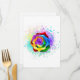 Rosa grande y floreciente con pétalos de arco iris sobre fondo blanco, pintado con salpicaduras de pintura colorida y brillante. 3.ª
