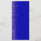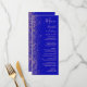 El lado izquierdo de este elegante y moderno menú boda presenta un rosa de diseño purpurina de imitación dorada. El texto del personalizable combina la escritura a mano de color rosa pálido, la copperplate y las letras cursivas en un fondo azul real. El reverso presenta un diseño a juego con el azul real y el oro rosa purpurina.
