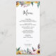 El rústico Rosa de girasol Borgoña Fall Wedding Food Menu incluye una hermosa acuarela con rosas de Borgoña, girasoles, flores silvestres y vegetación. Perfecto para una boda campestre otoño. Este programa de ceremonias Bodas es hermoso para una boda rural o una boda en el jardín