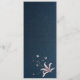 flores polvorientas de la horangea rosa con bellas hojas azul marino menú boda botánico La espalda de la carta: elegantes azulejos rosas sobre un fondo azul marino Los detalles del purpurina se simulan