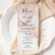 Moda, diseño moderno con un elegante fondo de mármol adornado con falsos purpurinas en tonos rosa dorado, rosa y blanco. La palabra "Menú" y los nombres de la novia y del novio aparecen en escritura gris carbón, con el texto restante en letra sans serif. El mármol y el diseño purpurina se repiten al revés.