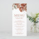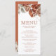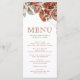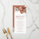 Elegante menú de boda temático de terracota con hermosas flores de tierra.