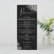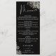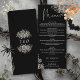 Esta elegante menú de boda floral gótico en blanco y negro se puede personalizar con su información en tipografía chic con sus iniciales de monograma en el reverso. Diseñado por Thisisnotme©