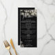 Este elegante menú de boda gótico floral y con luces de cadena en blanco y negro se puede personalizar con su información en tipografía de moda con sus iniciales de monograma al revés. Diseñado por Thisisnotme©