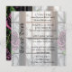 Este menú presenta hermosos rosas morados en una ventana de estilo gótico. ¡Perfecto para su boda gótica o aniversario!