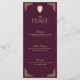 Dé un paso atrás en el tiempo con nuestro impresionante diseño de la carta de menú del boda de la musa real. Inspirado por la icónica era de las edades medievales y los reinos de fantasía. Nuestro diseño de boda musa real es perfecto para parejas que buscan una estética medieval suntuosa, regia y a la vez moderna. Cada elemento es dibujado a mano por nosotros, hasta el último detalle. Plum real profundo, emparejado con acentos dorados ricos, escudo familiar de la corona monogramo y nuestro mapa de fantasía del mundo antiguo dibujado a mano captura la sofisticación y la nobleza. Todos los trabajos artísticos son meticulosamente dibujados a mano por nosotros, para crear nuestros originales diseños bodas. Personalice el texto, la fuente y los colores para que se ajusten a sus preferencias de diseño.