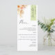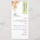 ¿Por qué gastar en las tarjetas de lugar y de menú cuando se puede tener un elegante menú todo en uno personalizado con cada nombre de invitado? Diseño contemporáneo, sencillo y elegante con exquisitos detalles de acuarela floral en una hermosa mezcla de melocotón, naranja, color rubor, rosa polvoriento, crema y champán. Elementos modernos de caligrafía escrita a mano. Stripe en la esquina superior derecha en tono verde con el nombre del invitado en negro. De vuelta en el mismo verde que la franja. Capacidad de cambiar el color de la banda o de vuelta seleccionando "personalizar más adelante". NOTA: por favor, un pedido individual para cada menú agregando el nombre del cliente en el menú, agregando el menú en el carrito de la compra; luego regresa al menú, agrega el segundo nombre del invitado, agrega el menú al carrito de la compra...continúe con este proceso con todos los nombres de invitados en la lista. Zazzle no recibe listas de nombres de invitados para imprimir. Para los primeros nombres breves añada con la barra espaciadora del teclado algunos "espacios" vacíos antes de un nombre a otro. Diseño disponible en una variedad de opciones de color. Parte de nuestra colección "Peach Floral Delight and Green" con una variedad de productos de coordinación disponibles. Visita toda la colección en: https://www.zazzle.com/collections/peach_floral_delight_and_green-119552409662994360
